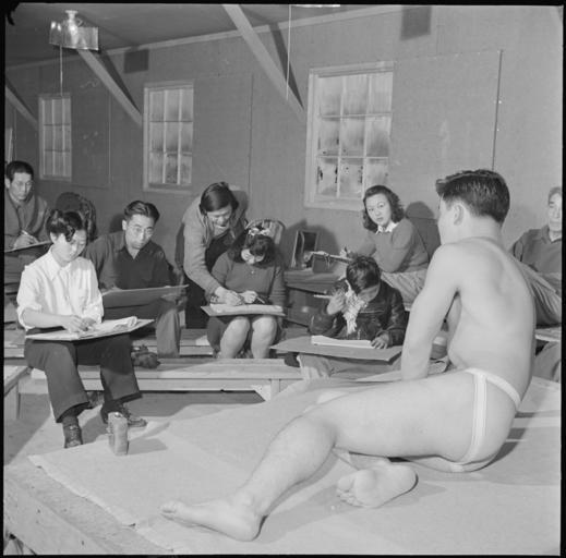 Keywords: Heart Mountain Relocation Center, Heart Mountain, Wyoming. Benji Okuda instructing a life class, an . . . - NARA - 539164.jpg Scope and content The full caption for this photograph reads Heart Mountain Relocation Center Heart Mountain Wyoming Benji Okuda instructing a life class an adult night school group at the Heart Mountain Relocation Center General notes 539164 Local identifier 210-G-E606 Department of the Interior War Relocation Authority 02/16/1944 - 06/30/1946 NARA-Author Parker Tom Photographer 4682167 <br /> Still Picture Records Section Special Media Archives Services Division NWCS-S National Archives at College Park 8601 Adelphi Road College Park MD 20740-6001 1943-01-11 Record group Record Group 210 Records of the War Relocation Authority 1941 - 1989 Record group ARC 537 Central Photographic File of the War Relocation Authority compiled 1942 - 1945 Series ARC 536000 File unit File unit ARC Variant control numbers NAIL Control Number NWDNS-210-G-E606 Other versions <gallery> File Heart_Mountain_Relocation_Center _Heart_Mountain _Wyoming _Benji_Okuda_instructing_a_life_class _an_ _ _ _-_NARA_-_539164 tif tif File Heart_Mountain_Relocation_Center _Heart_Mountain _Wyoming _Benji_Okuda_instructing_a_life_class _an_ _ _ _-_NARA_-_539164 jpg jpg </gallery> NARA-cooperation PD-USGov Figure modeling Black and white photographs of ateliers Heart Mountain War Relocation Center