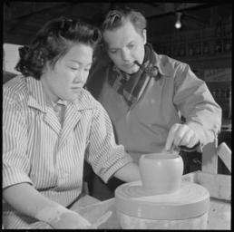 | Keywords: Heart Mountain Relocation Center, Heart Mountain, Wyoming. Minnie Negoro, an art student at the Uni . . . - NARA - 539261.jpg Scope and content The full caption for this photograph reads Heart Mountain Relocation Center Heart Mountain Wyoming Minnie Negoro an art student at the University of California in Los Angeles before the evacuation of the persons of Japanese ancestry from west coast defense areas is taking up the art of the potters wheel at the Heart Mountain Relocation Center Ceramics expert and artists Daniel Rhodes is instructing several resident students for future work in the Ceramics Plant General notes 539261 Local identifier 210-G-E706 Department of the Interior War Relocation Authority 02/16/1944 - 06/30/1946 NARA-Author Parker Tom Photographer 4682167 <br /> Still Picture Records Section Special Media Archives Services Division NWCS-S National Archives at College Park 8601 Adelphi Road College Park MD 20740-6001 1943-01-11 Record group Record Group 210 Records of the War Relocation Authority 1941 - 1989 Record group ARC 537 Central Photographic File of the War Relocation Authority compiled 1942 - 1945 Series ARC 536000 File unit File unit ARC Variant control numbers NAIL Control Number NWDNS-210-G-E706 Other versions <gallery> File Heart_Mountain_Relocation_Center _Heart_Mountain _Wyoming _Minnie_Negoro _an_art_student_at_the_Uni_ _ _ _-_NARA_-_539261 tif tif File Heart_Mountain_Relocation_Center _Heart_Mountain _Wyoming _Minnie_Negoro _an_art_student_at_the_Uni_ _ _ _-_NARA_-_539261 jpg jpg </gallery> NARA-cooperation PD-USGov Heart Mountain War Relocation Center |