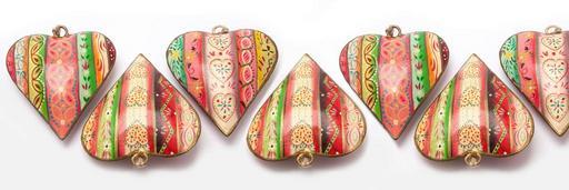 Keywords: heart painted cheerful serene colorful green red pink yellow gold hand labor arts crafts metal symbolic love connectedness loving ranking