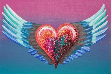 Keywords: heart wing love luck painted wedding romance gift red orange pink purple colorful turquoise light green complementary romantic valentine decoration warm structure