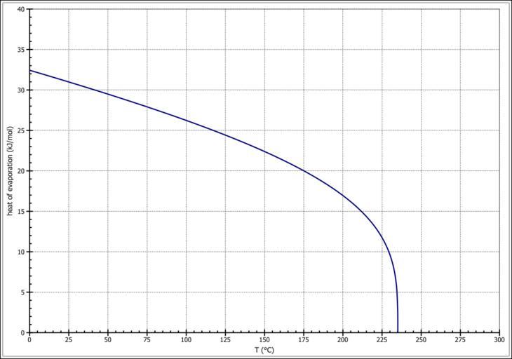 | Keywords: Heat of evaporation acetone.svg  en Heat of evaporation of acetone - temperature dependence de Verdampfungswärme von Aceton - Temperaturfunktion own Steffen 962 2011-03-09 calculated according/berechnet nach Δ<sub>V</sub>H<sup>0</sup> A·exp ˆ’β·T<sub>r</sub> 1 ˆ’T<sub>r</sub> <sup>β</sup> Δ<sub>V</sub>H<sup>0</sup> in kJ/mol T<sub>r</sub> T/T<sub>c</sub> reduzierte Temperatur mit A 46 95 kJ/mol β 0 2826 und T<sub>c</sub> 508 2 K V Majer V Svoboda Enthalpies of Vaporization of Organic Compounds A Critical Review and Data Compilation Blackwell Scientific Publications Oxford 1985 300 Cc-zero Heat of evaporation Acetone |