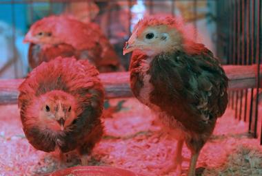 Keywords: heat lamp red light chick chicken rhode island red hen baby feathers 3 weeks old farm poultry beak animal fowl ugly pet warm
