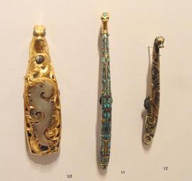 | Keywords: Heavy Gold Buckle and Two Gilt Bronze Belt Hooks, 475-221 BC, Warring States Period, China, with inlays - Sackler Museum - DSC02589.JPG Exhibit in the Sackler Museum Harvard University Cambridge Massachusetts USA The museum permitted photography of this artwork without restriction This artwork is in the public domain because the artist died more than 70 years ago Daderot 2012-11-17 12 40 49 Daderot cc0 cc0 Chinese metalwork in the Sackler Museum Metalwork of the Warring States period Bronzes of the Warring States |