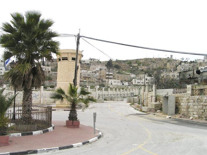 Keywords: Hebron066.JPG חברון الخليل Hebron Own 2007-03-23 eman 2007 in Hebron 2007-03-23 Military buildings in Hebron Streets in Hebron Street furniture in Hebron Trees in Hebron Files by User eman from he wikipedia/Hebron هذه الصوره في اخر شارع الشهداء مقابل الحسبه في الخليل على يمين الصوره وامام برج المراقبه مقبره الخليل الشارع مغلق منذ مجزره الحرم سنه 1994 والمرور للمقبره من شارع خلفي والحسبه وجوارها مسنوطنه صهيونيه |