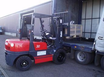 Keywords: Heftruck in actie.JPG en A forklift truck in action nl Een heftruck in actie own Glasman5 Cc-zero Forklift trucks