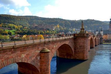Keywords: heidelberg bridge landscape travel architecture river sky outdoor light tourism city view scenic landmark cityscape natural europe germany
