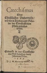 | Keywords: Heidelberger Katechismus 1563.jpg Heidelberger Katechismus Druck 1563 http //heidelblog files wordpress com/2009/01/catechismus1563 jpg 1563 PD-old-100 Heidelberger Katechismus 1563 books Illustrated title pages from Germany History of Heidelberg |