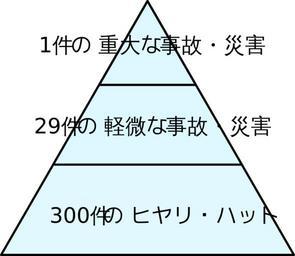 | Keywords: Heinrich's law ja.svg en Heinrich's law in Japanese ratio between fatal light and near-accident is 1 29 300 ja ハインリッヒの法則 1 29 300 none was a bee 2009-05-10 Occupational safety and health Heinrich's law Diagrams in Japanese Triangular diagrams |