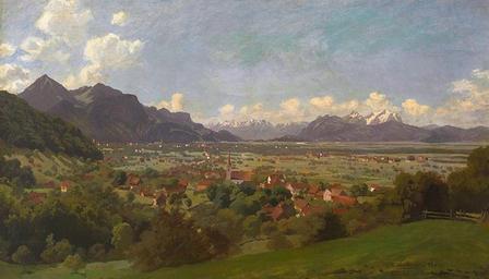 | Keywords: Heitinger Dornbirn 1883.jpg Blick von der Parzelle Knie im Stadtteil Haselstauden auf Dornbirn und das Rheintal mit Säntismassiv oil on canvas 46 x 77 cm zeller de 1883 Paul Heitinger 1841-1920 47 26 05 52 N 9 45 43 31 E PD-art Remote views of Säntis Alpine Rhine Valley 1883 paintings History of Dornbirn Haselstauden Paul Heitinger Images from Auktionshaus Zeller |
