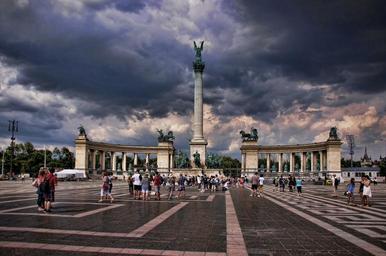 Keywords: heldenplatz budapest places of interest half circle tourists monument landmark hungary clouds