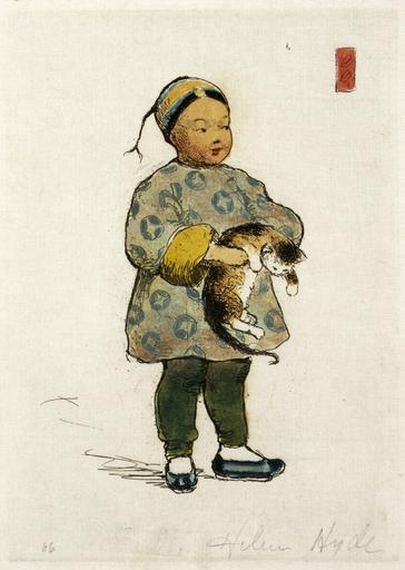 Keywords: Helen Hyde, The cat and the cherub, 1897 (LOC cph.3g11475).jpg ;Title The cat and the cherub ;Creator s Hyde Helen 1868-1919 artist ;Date Created/Published 1897 ;Medium 1 print on white wove tissue paper etching color ; 17 5 x 12 5 cm block 24 1 x 16 7 cm sheet ;Summary Print shows a Chinese boy holding a cat Probably sketched in San Francisco Chinatown ;Reproduction Number LC-USZC4-11475 color film copy transparency ;Rights Advisory No known restrictions on publication ;Call Number FP - XIX - Hyde H no 14b AA size P P ;Repository Library of Congress Prints and Photographs Division Washington D C 20540 USA ;Notes Title from item Cartouche in plate Signed and numbered 86 in pencil within plate Titled in pencil below plate Edition of 100 ;Subjects Boys--1890-1900 Cats--1890-1900 Clothing Dress--Chinese--1890-1900 ;Format Cartouches Graphic --Color--1890-1900 Etchings--Color--1890-1900 ;Collections http //www loc gov/pictures/collection/finepr/ Fine Prints ;Bookmark http //www loc gov/pictures/item/2003675445/ loc-image cph 3g11475 Woodprint of USA by Helen Hyde Japonism PD-old |