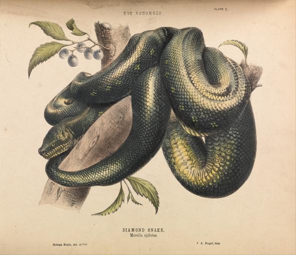 | Keywords: Helena Forde - Diamond Snake, Morelia spilotes - Google Art Project.jpg 1832 Sydney New South Wales Australia 1832 1910 Sydney New South Wales Australia 1910 Forde Female 432248 Helena Australian 1832 - 1910 /collection/museum-victoria/artwork/diamond-snake-morelia-spilotes-helena-forde/428414/ Helena Forde Artist /artist/helena-forde/4126208/ 4126208 /collection/museum-victoria/ Museum Victoria 338003 http //www museumvictoria com au/ 11/30/2011 12 54 25 AM /collection/museum-victoria/artwork/diamond-snake-morelia-spilotes-helena-forde/428414/ 1869 1869 Artistic Practices Scientific Research Natural History Printing Snakes Sciences Illustrations Lithograph; Ink on Paper 261 428414 False 1869 3/24/2012 1 18 04 AM LIB3 1 Copyright expired Source Museum Victoria / Artist Helena Forde Image 1860 1870 w205 x h261 mm 1869 False 1 15837104072398 Copyright expired Source Museum Victoria / Artist Helena Forde object diamond-snake-morelia-spilotes-helena-forde Diamond Snake Morelia spilotes d 205 Artistic Practices Scientific Research Natural History Printing Snakes Sciences Illustrations Lithograph; Ink on Paper special url_id WgEvjqJvzw42Mw PD-old-100-1923 1910 Google Art Project works by Helena Forde Helena Scott Morelia spilota |