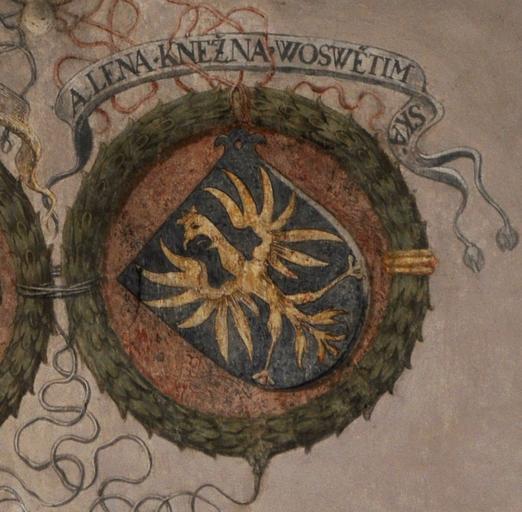 | Keywords: Helena Osvetimska 1581.jpg cs Erb osvětimské kněžny Heleny po 1524 manželky krnovského knížete Jana ze Šelenberka Nástěnná malba se Sboru českých bratří v Mladé Boleslavi 1581 en Coat of arms of Helene duchess od Auschwitz after 1524 wife of John of Schellenberg duke of Jagerndorf A wall painting in Czech Brethern Curch in Mladá Boleslav 1581 2014-03-14 17 13 11 own David Beneš other versions cc-zero Uploaded with UploadWizard Coats of arms of Duchy of Oświęcim Former Czech Brethren church Mladá Boleslav |