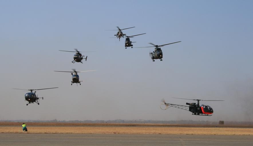Keywords: helicopters aerial display aviation flying skill rotors airborne dust tarmac grass strip airfield military