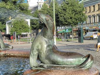 Keywords: helsinki finland statue sculpture sea lion seal art artistic plaza urban city cities outside