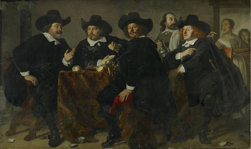 | Keywords: Helst2.jpg  Artwork creator Bartholomeus van der Helst title Four aldermen of the Kloveniersdoelen in Amsterdam 1655 De overlieden van de Kloveniersdoelen 1655 1655 Oil on canvas cm 171 283 Amsterdam Museum The persons portrayed are from left to right aldermen and contemporaries Cornelis Jan Witsen Roelof Bicker Simon van Hoorn Gerrit Reynst langswitch op een stoel on a chair object history ProvenanceEvent 1655 transfer Kloveniersdoelen Singel Amsterdam < 1718 transfer City Hall Dam Amsterdam ProvenanceEvent 1899-1926 lent Rijksmuseum Amsterdam Amsterdam City of Amsterdam ProvenanceEvent unknown acquisition Amsterdams Historisch Museum inv no SA 2101 Amsterdam Rijksmuseum en wikipedia Риколай Путин SA 2101 Other versions PD-US PD-old-100 original upload log page en wikipedia Helst2 jpg 2007-07-19 23 35 Neddyseagoon 850×496× 114363 bytes http //cgfa sunsite dk/h/p-helst2 htm People of Amsterdam Bicker van Swieten Bartholomeus van der Helst Portrait paintings in the Amsterdam Museum Militia paintings 17th-century oil on canvas paintings in the Netherlands People in rooms in art Portraits with table carpets Portrait paintings of men wearing hats Black clothing in art male 1655 paintings Group portraits with 7 persons Amsterdam in the 1650s |