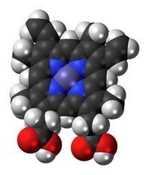 | Keywords: Heme B 3D spacefill.png Space-filling model of the Heme B complex also known as haem B the core of hemoglobin that carries oxygen in blood This image shows the electrically neutral form Colour code 505050 Carbon C black<br> F0F0F0 Hydrogen H white<br> F51E1E Oxygen O red<br> 3C50FA Nitrogen N blue<br> 8078C0 Iron Fe grey-purple<br> 2011-06-27 own DS Visualizer Jynto talk Neutral form ball-and-stick version Anionic form ball-and-stick version Anionic form space-filling version cc-zero Images by Jynto Space-filling models Haem b |