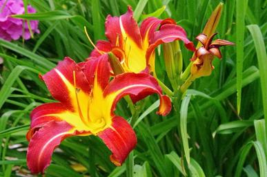 Keywords: hemerocallis yellow flower red lily flower nature