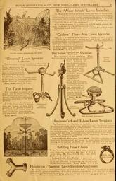 | Keywords: Henderson's midsummer catalogue (16605764498).jpg PETER HENDERSON CO NEW YORK ” LAWN SPRINKLERS <br> 25 <br> WATER WITCH SPRINKLER ON SPUR <br> Universal Lawn Sprinkler <br> And Fountain <br> This combination Lawn Sprinkler and Fountain <br> is very attractive The nickel-plated arms re- <br> volve distributing the <br> water in rain-like drops <br> over an area of 25 feet or <br> more in diameter accord- <br> ing to the water pressure <br> In addition to this the <br> central oval spray cover causes some <br> to be thrown up forming an umbrella- <br> shaped fountain see engraving <br> Price 3 00 each P P 5 lbs <br> The Turbo Irrigator <br> This sprinkler mounted on its <br> tripod may be placed anywhere <br> and coupled to garden hose Will <br> water a circle of 50 to 100 feet in <br> diameter according to the water <br> pressure <br> A single stream broken into a <br> rain of drops and spray is thrown <br> from the nozzle so that every <br> portion of the ground covered is <br> thoroughly and evenly watered <br> from center to circumference <br> See engraving Mail weight io lbs <br> Price 20 00 <br> The Water Witch Lawn Sprinklers <br> An effective device for sprinkling lawns gardens or flower beds <br> The water is divided and deflected by the two lips of the <br> which causes it to revolve rapidly scattering the water in <br> and evenly over a circular area of 25 to 40 feet diameter <br> more satisfactorily with a very low pressure of water <br> sprinkler we know of See engraving <br> Price without stand i e -with spur to stick in the ground 80c <br> each; Add extra for Parcel Post weight 1 lb <br> Price with stand 1 50 each Add extra for Parcel Po t weight <br> 3 lb <br> Cyclone Three- Arm Lawn Sprinkler <br> This is a low-priced arm Sprinkler; compactly <br> made with phosphor-bronze bearing ai <br> in diameter with suitable pressure of water The top and a <br> brass sled runner of japanned iron Q <br> The water flows freely through O JT <br> an unobstructed channel It stands <br> 12 inches high See engraving <br> Price 2 00 P P 3 lbs <br> The Sunset Fu ££ r ££ d Sprinkler <br> Does the work of two sprinklers When <br> the little thumb nut is screwed up the Sunset <br> covers a perfect half <br> circle enabling the <br> user to give his lawns a <br> thorough drenching <br> right up to the edge of <br> the sidewalk with- <br> out wetting the <br> walk itself When <br> the little thumb <br> nut is screwed <br> down the Sun- <br> set sprinkles a <br> full circle <br> gently but thoroughly <br> covering an area 25 30 <br> or 35 feet in diame- <br> ter depending on <br> the water pressure <br> It can be dragged <br> around the lawn <br> without tipping <br> See engraving ft <br> Price 1 50 <br> P P 4 lbs <br> Cyclone <br> Sprinkler <br> IRRIGATOR <br> THE SUNSET SPRINKLER <br> Henderson's 4-and 8-Arm Lawn Sprinklers <br> The Henderson 4 or 8-arm Lawn Sprinklers can be attached to hose <br> and placed anywhere on the lawn where they serve the double purpose <br> of a beautiful fountain and of a lawn sprinkler The water is distributed <br> in fine drops over an area of 40 to SO feet in circumference according to <br> the water pressure An ornamental standard about 4 feet <br> surmounted with long perforated arms which revolve so the beautiful <br> sprays are constantly changing See engraving Prices <br> sprinkler 7 50; 8-arm 8 50 <br> Ball and Basket Attachment extra 6 00 This fits on the top of <br> Henderson Sprinkler and the stream of water keeps the silvtr <br> dancing on its summit up in the air When the ball falls I <br> catches it and it rolls into the center and is raised again by the v <br> Bull Dog Hose Clamp <br> The best device for attaching hose couplings <br> hose straps for M-in hose 60c doz P P 1 lb <br> -m hose 75c doz P P 2 lbs ; 1-in hose <br> 1 25 doz P P 2 lbs <br> Ball and Socket Hose Holder A practical hose <br> holder It may be stuck anywhere and nozzle point- <br> ed in any direction by operating one thumb <br> onlball and socket joint Price 1 25 P P 4 lbs <br> Henderson's Siamese Lawn Sprinkler Attachment <br> By using these several sprinklers can be used at one tin <br> pressure will operate 3 sprinklers; 40 to 50-lb pressure 4 sprinklers; with 1- <br> pressure G sprinklers can be operated Bv this method larg <br> 1 Price for ' 4 -in hose 1 00 U 5 - P 1 lb F 1 1 18 P 1 lb ' 42331931 133822 66649 Page 25 Text http //www biodiversitylibrary org/page/42331931 c1922 10 5962/bhl title 66649 Henry G Gilbert Nursery and Seed Trade Catalog Collection ; Peter Henderson Co Biodiversity Heritage Library Henderson's midsummer catalogue 1922 Garden Stories Catalogs Fertilizers Fruit Insecticides Peter Henderson Co Seed industry and trade Seeds Trade catalogs Vegetables U S Department of Agriculture National Agricultural Library bhl page 42331931 dc identifier http //biodiversitylibrary org/page/42331931 bhlGardenStories Lawn Sprinklers Garden Tools and Implements BHLinbloom peter henderson co u s department of agriculture national agricultural library bhlgardenstories lawn sprinklers garden tools and implements bhlinbloom Information field Flickr posted date ISOdate 2015-03-12 CC-BY-2 0 BioDivLibrary https //flickr com/photos/61021753 N02/16605764498 2015-08-24 00 53 13 cc-by-2 0 PD-old-70-1923 Henderson's midsummer catalogue Photos uploaded from Flickr by Fæ using a script |