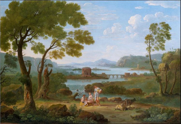 View Original:Hendrik_Frans_van_Lint_-_Classical_River_landscape_with_figures_and_goats_before_a_bridge,_waterfall_and_circular_temple.jpg (1458x997)