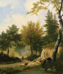 | Keywords: Hendrik Pieter Koekkoek - Idyllic summer forest landscape with sheep on a sunlit glade next to creek.jpg Hendrik Pieter Koekkoek 1843 “ circa 1890 oil canvas cm 76 65 accession number object history credit line exhibition history http //www zeller de/de/katalog/auktion-90-sep-06/auktionsartikel/hendrik-pieter-koekkoek-1843-hilversum-um-1890-england-war-in-amsterdam-london-und-den-haag/ Auktionshaus Zeller Auktion 90 Sep 2006 Los 1095 PD-old-100 DEFAULTSORT Koekkoek Hendrik Pieter; Landscape; Zeller 2006 Hendrik Pieter Koekkoek 19th-century landscape paintings Images from Auktionshaus Zeller Pastoral landscape paintings |