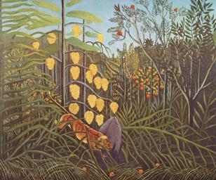 | Keywords: Henri Rousseau 008.jpg Artwork creator Henri Rousseau Struggle between Tiger and Bull Combat de tigre et de buffle c 1908 1909 oil canvas cm 46 55 Institution Hermitage object history credit line accession number The Yorck Project 10 000 Meisterwerke der Malerei DVD-ROM 2002 ISBN 3936122202 Distributed by DIRECTMEDIA Publishing GmbH PD-old-100 Struggle between Tiger and Bull by Henri Rousseau | ||||