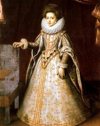 | Keywords: henrieta maria henrietamaria queen of britain queenofbritain stuart royals united kingdom unitedkingdom portrait charles i Henrietta Maria of France, Queen consort of England, Scotland and Ireland (25 November[1] 1609 – 10 September 1669) was the consort of Charles I. She was the mother of two kings, Charles II and James II, and was grandmother to Mary II, William III, and Anne of Great Britain. Henriette-Marie de France was born the daughter of the King of France and Navarre, Henry IV; her mother was the Italian Marie de Medici and was the second consort of Henry IV. As the daughter of the king, she was a Fille de France. She was the youngest sister of the future King Louis XIII of France. Her father was killed before she was under a year old in Paris on 14 May 1610; her mother was banished from the royal court in 1617. From birth she was a member of the House of Bourbon, Maison de Bourbon in French. She was born at the Palais du Louvre on 25 November 1609, but some historians give her a birthdate of 26 November. In England, where the Julian calendar was still in use, her date of birth is often recorded as 16 November. Henrietta Maria was brought up as a Roman Catholic. After her older sister Christine Marie of France married the Sovereign Duke of Savoy in 1619, Henriette Marie took on the highly prestigious style of Madame Royale; this style was used by the most senior royal princess at the French court. She first met her future husband while he was travelling to Spain to arrange a marriage with the Infanta Maria Anna of Spain; Charles met Henriette Marie in Paris en route. The trip however ended badly as the Spanish King Philip III demanded that Charles convert to Roman Catholicism and remain in Spain for a year after the wedding as a sort of hostage to ensure England's compliance with all the terms of the treaty. Charles was outraged, and upon their return in October, he and Buckingham demanded that King James declare war on Spain. Charles then looked elsewhere for a bride. He looked to France where the attractive Henriette Marie lived at the court of her brother and was still unmarried by 1625. This made her an unpopular choice of wife for the English King Charles I of England, whom she married by proxy on 11 May 1625, shortly after his accession to the throne. They were married in person at St. Augustine's Church, Canterbury, Kent, on 13 June 1625. However, her religion made it impossible for her to be crowned with her husband in an Anglican service. Initially their relationship was rather frigid. Henrietta Maria had brought a large and expensive retinue with her from France, all of them Roman Catholic. It is said that eventually Charles sent them home to France, only allowing his teenage bride to retain her chaplain and confessor, Robert Phillip, and two ladies in waiting. Finding her sadly watching the retinue depart for France at the window of a palace, Charles angrily and forcibly dragged his wayward queen away.[citation needed] Charles had intended to marry Maria Anna, a daughter of Philip III of Spain, but a mission to Spain in 1623 had failed. Perhaps this earlier disappointment explains why relations with his French bride were strained; every time the couple met, they started arguing and would separate, not seeing each other for weeks. When next they met, again they had to separate, because they could not stop arguing. Henrietta Maria took an immediate dislike to George Villiers, 1st Duke of Buckingham, the King's favourite. However, after Buckingham's death in August 1628, her relationship with her husband, Charles I, improved and they finally forged deep bonds of love and affection. Her refusal to give up her Catholic faith alienated her from many of the people and certain powerful courtiers such as William Laud, Archbishop of Canterbury and Thomas Wentworth, Earl of Strafford. Charles, on the other hand, had definite leanings towards Catholicism, and, once he had reached maturity, did not share his father's sexual ambivalence. Henrietta Maria increasingly took part in national affairs as the country moved towards open conflict through the 1630s. She despised Puritan courtiers to deflect a diplomatic approach to Spain and sought a coup to pre-empt the Parliamentarians. As war approached she was active in seeking funds and support for her husband, but her concentration on Catholic sources like Pope Urban VIII and the French angered many in England and hindered Charles' efforts. She was also sympathetic to her fellow Catholics and even gave a requiem in her private chapel at Somerset House for Father Richard Blount, S.J. upon his death in 1638. In August 1642, when the conflict began, she was in Europe. She continued to raise money for the Royalist cause, and did not return to England until early 1643. She landed at Bridlington in Yorkshire with troops and arms, and joined the Royalist forces in northern England, making her headquarters at York. She remained with the army in the north for some months before rejoining the King at Oxford. The collapse of the king's position following Scottish intervention on the side of Parliament, and his refusal to accept stringent terms for a settlement led her to flee to France with her sons in July 1644. Charles was executed in 1649, leaving her almost destitute. She settled in Paris, appointing as her chancellor the eccentric Sir Kenelm Digby. She angered both Royalists in exile and her eldest son by attempting to convert her youngest son, Henry, to Catholicism. She returned to England following the Restoration in October 1660 and lived as 'Dowager Queen' and 'Queen Mother' at Somerset House in London until 1665 when she returned permanently to France. After her son's restoration she returned to England where Pepys, on 22 November 1660, met her and described her as a 'very little plain old woman, and nothing more in her presence in any respect nor garb than any ordinary woman'. Her financial problems were resolved by a gen