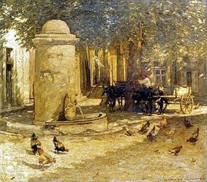 Keywords: Henry Herbert La Thangue - Fountain.jpg Fountain in a Provencal Village oil on canvas Henry Herbert La Thangue photographical reproduction in the public domain PD-Art Henry Herbert La Thangue