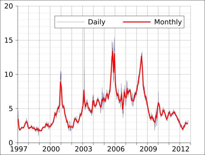 | Keywords: Henry hub NG prices.svg en Y-axis Dollars per MMBTU 1 MMBTU of natural gas equals approx 28¼ cubic meter according to en British thermal unit X-axis year Previously Data from the New Mexico Institute of Mining and Technology Prices are nominal not adjusted for inflation http //octane nmt edu/gotech/Marketplace/Prices aspx Updated Image data now from the EIA site as they are now very comprehensive Exactly how they define the monthly price is unclear but the excel sheet seems to show the 2nd or 3rd week contract expiration but that might be wrong http //www eia gov/dnav/ng/hist/rngwhhdD htm Image created with Gnumeric 1 10 14 own Theanphibian 2009-06-04 Natural gas statistics |