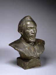 | Keywords: Henry Ossawa Tanner - Bust of Benjamin Tucker Tanner - Walters 2833 - Three Quarter.jpg Henry Ossawa Tanner is regarded as one of the most distinguished African American painters He received his training at the Pennsylvania Academy of Fine Arts in Philadelphia under Thomas Eakins and at the Académie Julian in Paris After 1895 he lived in Paris and painted religious works inspired by his travels in the Holy Land Tanner produced few portraits and only a couple of these were sculptures The bust is slightly less than life size and this combined with its slightly rough finish suggest that it is a study for another more finished piece Represented here is the artist's father Bishop Benjamin Tucker Tanner 1835-1923 a distinguished cleric in the African American Methodist Episcopal A M E Church In 1866 the senior Tanner was pastor at the Bethel A M E Church in Baltimore and later he served in Frederick Maryland Twenty years later he became a bishop in Kansas City Bishop Tanner was also a writer and poet and published books pertaining to the A M E Church 1894 painted or patinated plaster cm 38 1 31 8 24 1 accession number 28 33 34753 Sadie T M Alexander niece of the artist Steven L Jones African American Material Culture Philadelphia date and mode of acquisition unknown Walters Art Museum 2004 by purchase Museum purchase with funds provided by the Eddie and Sylvia Brown Challenge Grant for the Acquistion of African American Art and the estate of Anna Fehl 2004 Signature On left side of base H O Tanner Henry O Tanner Modern Spirit Pennsylvania Academy of the Fine Arts Philadelphia; The Museum of Fine Arts Houston Houston; Cincinnati Art Museum Cincinnati 2012-2013 place of origin USA PD-old-auto 1937 Henry Ossawa Tanner Media contributed by the Walters Art Museum needs category review Sculptures in the Walters Art Museum Busts of poets African Americans in 19th-century art Tanner |