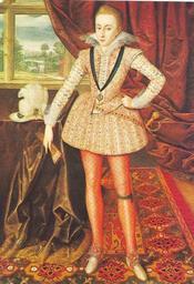| Keywords: stuart english royalty englishroyalty portrait 16th century 16thcentury 17th century 17thcentury scotland united kingdom unitedkingdom britain studio of Isaac Oliver,miniature,circa 1610 Henry Frederick, Prince of Wales (19 February 1594 – 6 November 1612) was the eldest son of King James I & VI and Anne of Denmark. His name comes from grandfathers Henry Stuart, Lord Darnley and Frederick II of Denmark. Prince Henry was widely seen as a bright and promising heir to his father's throne. However, at the age of 18, he predeceased his father when he died of typhoid fever. Subsequently, the heirship to the English and Scottish thrones passed to his younger brother Charles. Many places in the Colony of Virginia were named in honour of Prince Henry before and after his death. He was born at Stirling Castle and became Duke of Rothesay, Earl of Carrick, Baron of Renfrew, Lord of the Isles and Prince and Great Steward of Scotland automatically on his birth. His father placed him in the care of Alexander Erskine, Earl of Mar, and out of the care of the boy's mother, because James worried that the mother's tendency toward Catholicism might affect the son. Although the child's removal caused enormous tension between Anna and James, Henry remained under the care of Mar's family until 1603, when James became King of England and his family moved south.[1] His tutor until he went to England was Sir George Lauder of The Bass, a Privy Counsellor — described as the King's "familiar councillor"[2] — and he was also tutored in music by Alfonso Ferrabosco the younger.The king "much preferred the role of schoolmaster than that of father", and wrote texts for the schooling of his offspring. James directed that Henry's household "should rather imitate a College than a Court",[3] or, as Sir Thomas Chaloner wrote in 1607, His Highness's household [...] was intended by the King for a courtly college or a collegiate court"[4] In 1605, Henry entered Magdalen College, Oxford, where the witty, outgoing, popular young man became interested in sports. His other interests included naval and military affairs, and national issues, about which he often disagreed with his father. He also disapproved with the way his father conducted the royal court, disliked Robert Carr, a favorite of his father, and esteemed Sir Walter Ralegh, wishing him released from the Tower of London.[1] The prince's popularity rose so high that it threatened his father. Relations between the two could be tense and on occasion surfaced in public. At one point, they were hunting near Royston when James I criticized his son for lacking enthusiasm for the chase, and Henry initially moved to strike his father with a cane but rode off. Most of the hunting party then followed the son.[3] "Upright to the point of priggishness, he fined all who swore in his presence", according to Charles Carlton, a biographer of Charles I, who described Henry as an "obdurate Protestant".[3] In addition to the alms box that Henry forced swearers to contribute to, he made sure his household attended church services. His religious views were influenced by the clerics in his household who were largely from a tradition of politicized Calvinism. To his preachers, Henry listened humbly, attentively and regularly to the sermons preached to his household, and once told his chaplain, Richard Milbourne, that he esteemed most the preachers with an attitude that suggested, "Sir, you must hear me diligently: you must have a care to observe what I say."[4] Henry is said to have disliked his younger brother, Charles, and teased him. Yet there is only one surviving anecdote between the two: When Charles was nine years of age, Henry snatched off the hat of a bishop and put it on the younger child's head, then told his younger brother that when he became king he would make Charles Archbishop of Canterbury, and then Charles would have a long robe to hide his ugly rickety legs. Charles stamped on the cap and had to be dragged off in tears. Following his father's accession to the throne of England in 1603, he became automatically Duke of Cornwall, and was invested Prince of Wales and Earl of Chester in 1610, thus uniting the six automatic and two traditional Scottish and English titles held by heirs-apparent to the throne(s) ever since that date. As a young man, Henry showed great promise and was beginning to be active in leadership matters. He was a friend of Sir Walter Ralegh. Among his activities, he was responsible for the reassignment of Sir Thomas Dale to the Virginia Company of London's struggling colony in North America. He died from typhoid fever at the age of 18. (The diagnosis can be made with reasonable certainty from written records of the post-mortem examination.) Henry was buried in Westminster Abbey. Prince Henry's death was widely regarded as a tragedy for the nation, some may consider prophetic. According to Charles Colton, "Few heirs to the English throne have been as widely and deeply mourned as Prince Henry." His body lay in state at St. James's Palace for four weeks as his father collected money for an extravagant funeral on December 7, when over a thousand people walked in the mile-long cortege to Westminster Abbey to hear the two-hour sermon delivered by the Archbishop of Canterbury. As Henry's body was lowered into the ground, his chief servants broke their staves of office at the grave. An insane man ran naked through the mourners, yelling that he was the boy's ghost.[3] Charles immediately fell ill after Henry's death, but was the chief mourner at the funeral, which James I (detesting funerals) refused to attend.[3] Upon his death, all of Henry's automatic titles passed to his younger brother, Charles, who, until then, had lived in Henry's shadow – Charles was created Prince of Wales and Earl of Chester four years later. Charles was not as well-regarded as Henry had been, and after he assumed the throne following the death of his father in 1625 as King 