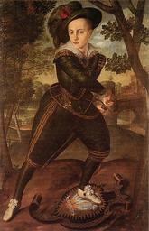 | Keywords: stuart english royalty englishroyalty portrait 16th century 16thcentury 17th century 17thcentury scotland united kingdom unitedkingdom britain studio of Isaac Oliver,miniature,circa 1610 Henry Frederick, Prince of Wales (19 February 1594 – 6 November 1612) was the eldest son of King James I & VI and Anne of Denmark. His name comes from grandfathers Henry Stuart, Lord Darnley and Frederick II of Denmark. Prince Henry was widely seen as a bright and promising heir to his father's throne. However, at the age of 18, he predeceased his father when he died of typhoid fever. Subsequently, the heirship to the English and Scottish thrones passed to his younger brother Charles. Many places in the Colony of Virginia were named in honour of Prince Henry before and after his death. He was born at Stirling Castle and became Duke of Rothesay, Earl of Carrick, Baron of Renfrew, Lord of the Isles and Prince and Great Steward of Scotland automatically on his birth. His father placed him in the care of Alexander Erskine, Earl of Mar, and out of the care of the boy's mother, because James worried that the mother's tendency toward Catholicism might affect the son. Although the child's removal caused enormous tension between Anna and James, Henry remained under the care of Mar's family until 1603, when James became King of England and his family moved south.[1] His tutor until he went to England was Sir George Lauder of The Bass, a Privy Counsellor — described as the King's "familiar councillor"[2] — and he was also tutored in music by Alfonso Ferrabosco the younger.The king "much preferred the role of schoolmaster than that of father", and wrote texts for the schooling of his offspring. James directed that Henry's household "should rather imitate a College than a Court",[3] or, as Sir Thomas Chaloner wrote in 1607, His Highness's household [...] was intended by the King for a courtly college or a collegiate court"[4] In 1605, Henry entered Magdalen College, Oxford, where the witty, outgoing, popular young man became interested in sports. His other interests included naval and military affairs, and national issues, about which he often disagreed with his father. He also disapproved with the way his father conducted the royal court, disliked Robert Carr, a favorite of his father, and esteemed Sir Walter Ralegh, wishing him released from the Tower of London.[1] The prince's popularity rose so high that it threatened his father. Relations between the two could be tense and on occasion surfaced in public. At one point, they were hunting near Royston when James I criticized his son for lacking enthusiasm for the chase, and Henry initially moved to strike his father with a cane but rode off. Most of the hunting party then followed the son.[3] "Upright to the point of priggishness, he fined all who swore in his presence", according to Charles Carlton, a biographer of Charles I, who described Henry as an "obdurate Protestant".[3] In addition to the alms box that Henry forced swearers to contribute to, he made sure his household attended church services. His religious views were influenced by the clerics in his household who were largely from a tradition of politicized Calvinism. To his preachers, Henry listened humbly, attentively and regularly to the sermons preached to his household, and once told his chaplain, Richard Milbourne, that he esteemed most the preachers with an attitude that suggested, "Sir, you must hear me diligently: you must have a care to observe what I say."[4] Henry is said to have disliked his younger brother, Charles, and teased him. Yet there is only one surviving anecdote between the two: When Charles was nine years of age, Henry snatched off the hat of a bishop and put it on the younger child's head, then told his younger brother that when he became king he would make Charles Archbishop of Canterbury, and then Charles would have a long robe to hide his ugly rickety legs. Charles stamped on the cap and had to be dragged off in tears. Following his father's accession to the throne of England in 1603, he became automatically Duke of Cornwall, and was invested Prince of Wales and Earl of Chester in 1610, thus uniting the six automatic and two traditional Scottish and English titles held by heirs-apparent to the throne(s) ever since that date. As a young man, Henry showed great promise and was beginning to be active in leadership matters. He was a friend of Sir Walter Ralegh. Among his activities, he was responsible for the reassignment of Sir Thomas Dale to the Virginia Company of London's struggling colony in North America. He died from typhoid fever at the age of 18. (The diagnosis can be made with reasonable certainty from written records of the post-mortem examination.) Henry was buried in Westminster Abbey. Prince Henry's death was widely regarded as a tragedy for the nation, some may consider prophetic. According to Charles Colton, "Few heirs to the English throne have been as widely and deeply mourned as Prince Henry." His body lay in state at St. James's Palace for four weeks as his father collected money for an extravagant funeral on December 7, when over a thousand people walked in the mile-long cortege to Westminster Abbey to hear the two-hour sermon delivered by the Archbishop of Canterbury. As Henry's body was lowered into the ground, his chief servants broke their staves of office at the grave. An insane man ran naked through the mourners, yelling that he was the boy's ghost.[3] Charles immediately fell ill after Henry's death, but was the chief mourner at the funeral, which James I (detesting funerals) refused to attend.[3] Upon his death, all of Henry's automatic titles passed to his younger brother, Charles, who, until then, had lived in Henry's shadow – Charles was created Prince of Wales and Earl of Chester four years later. Charles was not as well-regarded as Henry had been, and after he assumed the throne following the death of his father in 1625 as King 