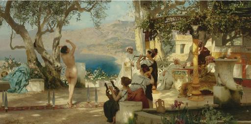 | Keywords: Henryk Siemiradzki - Taniec wśród mieczów (1887).jpg Artwork Creator Henryk Siemiradzki 1887 oil canvas cm 77 155 private collection object history PROVENANCE William Schaus New York; F O Matthiessen New York possibly acquired from the above and sold American Art Galleries New York April 1-2 1902 lot 73 ; Private Collection; Acquired from the above by the present owner in 1968 credit line signed H Siemiradzki inscribed Roma and dated 1887 lower left accession number http //www sothebys com/en/auctions/ecatalogue/2011/russian-works-of-art-n08733/lot 11 html Sotheby's thumb left LangSwitch A similar painting version 1881 Podobny obraz wcześniejsza wersja 1881 Аналогичная ка тина ве сия 1881 PD-Art-100 Dance amongst swords by Henryk Siemiradzki 1887 paintings from Russia Images from Sotheby's |