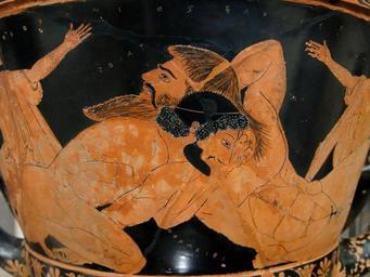 | Keywords: Herakles Antaios Louvre G103 n2.jpg Heracles wrestling with the libyan giant Antaeus Main side of a red-figured calix krater 515 “510 BC HĂ©raclès Ă©touffant le gĂ©ant libyen AntĂ©e Face principale d'un cratère en calice attique Ă figures rouges 515-510 av J -C own Jastrow Louvre G 103 |