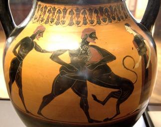 | Keywords: Herakles lion Louvre F33.jpg Group of London B 174 Heracles and the Nemean Lion Side B from an black-figure Attic amphora ca 540 BC Héraclès et le lion de Némée Face B d'une amphore attique à figures noires groupe de Londres B174 Athènes v 540 av J -C H 42 3 cm 16 ½ in Diam 28 5 cm 11 in Museum Louvre Department of Greek Etruscan and Roman Antiquities Sully first floor room 42 case 16 object history credit line Canino Collection 1840 accession number F 33 User Bibi Saint-Pol own work 2007-06-15 other versions <gallery> Image Theseus Minotaur Louvre F33 jpg Side A Image Theseus Minotaur Louvre F33 n2 jpg Detail of side A </gallery> Nemean Lion in Ancient Greek pottery Ancient Greek Belly amphoras Group of London B 174 Greek antiquities in the Louvre - Room 42 Canino Collection 540s BC pottery in France Paris Heracles in ancient Greek pottery |