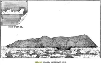 | Keywords: Herald Island Hooper.PNG of the landing site Report of the cruise of the U S revenue steamer Thomas Corwin in the Arctic Ocean 1881 Govt print off Washington http //books google com/books id 4JcSAAAAYAAJ Hooper Calvin L Original sketch probably by Hooper or possibly John Muir; engraver unknown 1884; original sketch 1881 Chukchi Sea Exploration Arctic Islands of Russia PD-USGov |