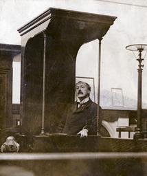 | Keywords: the women's library thewomenslibrary women suffrage politics herbert gladstone herbertgladstone bow london court witness hires 7JCC/O/02/057 Photograph, printed, paper, monochrome, Herbert Gladstone in the witness box at Bow Street Magistrates' Court; manuscript inscription on reverse 'Herbert Gladstone at Bow Street in Witness Box Oct 08', printed inscription 'Illustrations Bureau, 12 Whitefriars St, EC' 7JCC/O/02/057 Photograph, printed, paper, monochrome, Herbert Gladstone in the witness box at Bow Street Magistrates' Court; manuscript inscription on reverse 'Herbert Gladstone at Bow Street in Witness Box Oct 08', printed inscription 'Illustrations Bureau, 12 Whitefriars St, EC' |