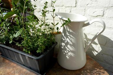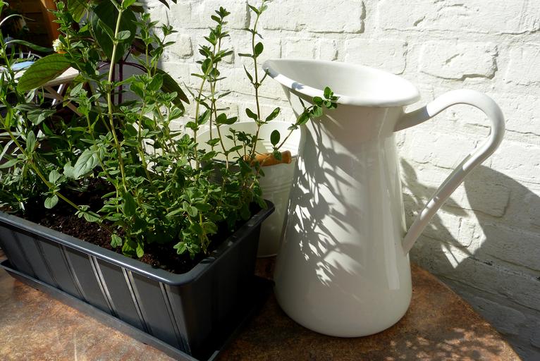 Keywords: herbs plant pot shadow sun garden edible nature spice green kitchen herb culinary herbs frisch oregano white