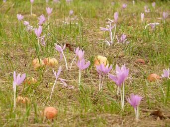 Keywords: herbstzeitlose flower blossom bloom purple autumn timeless colchicum autumnale time lots greenhouse colchicaceae poisonous plant pale pink violet