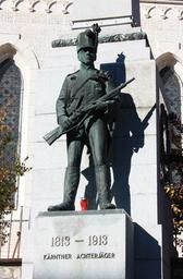 | Keywords: Hermagor - Achterjägerdenkmal1.jpg Hermagor War memorial Hermagor Achterjägerdenkmal Denkmalgeschütztes Objekt Österreich 17778 own Neithan90 2010-11-05 PD Cc-zero War memorials in Carinthia Hermagor Cultural heritage monuments in Hermagor Statues of soldiers Memorials of the Napoleonic Wars in Austria |