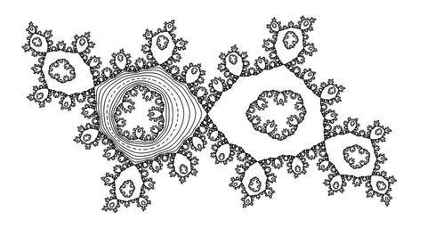 | Keywords: Herman Standard.png en It's a standard image of Julia set of the rational function e<sup>2 it</sup> z<sup>2</sup> z 4 / 1 4z with t 6151732 chosen so that the rotation number is 5 1 /2 which possess a Herman ring own Yangfei math 2010-06-06 Here is an example of a rational function which possesses a Herman ring <math>f z \frac e 2 \pi i \tau z 2 z - 4 1 - 4z </math> where <math>\tau 0 6151732\dots</math> such that the rotation number of on the unit circle is <math> \sqrt 5 -1 /2</math> The picture shown on the right is the Julia set of the curves in the white annulus are the orbits of some points under the iterations of while the dashed line denotes the unit circle Herman ring of period 1 and rotation number the golden mean Compare with <gallery> File Herman-ring-1 png image of the same Julia set with src code but worse quality </gallery> References <references/> Complex analysis Mathematical theorems Herman ring Complex rational maps |