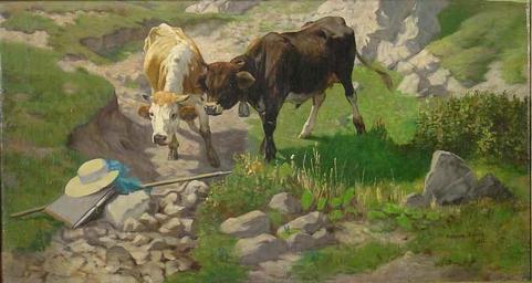 | Keywords: Hermann Baisch - Jungvieh auf der Alm.jpg Hermann Baisch 1846 “1894 1882 Technique oil canvas cm 57 102 object history credit line accession number http //www arcadja com/auctions/de/baisch_hermann/kunstler/1232/ Bernd Rieber Stuttgart 2008 10 13 via ARCADJA auction results PD-old-auto-1923 1894 Hermann Baisch Paintings of cattle 1880s landscape paintings |