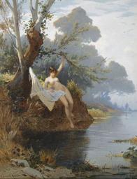| Keywords: Hermann Corrodi - Con la riva del fiume.jpg Artwork creator Hermann David Salomon Corrodi oil canvas panel cm 47 36 5 object history Kunst-Passage C van Waegeningh Düsseldorf<br/>Purchased by the grandparents of the present owner from the above circa 1971 credit line H Corrodi Roma ~ signature lower left accession number http //www sothebys com/de/auctions/ecatalogue/2011/european-paintings/lot 241 html Sotheby's London 22 November 201 lot 241 PD-old-auto-1923 1905 Hermann Corrodi Images from Sotheby's |