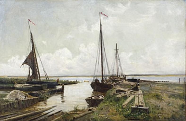 | Keywords: Hermann Eschke - Boddenhafen Wieck.jpg Artwork Creator Hermann Eschke 1884-07-09 oil canvas cm 34 0 51 0 object history credit line u r signiert datiert und bezeichnet 'Wieck 9 07 84' accession number http //www theartkey com/index php page news_id id 193 rlang de theartkey com PD-old-100 Hermann Eschke Mecklenburg-Vorpommern in art Wieck a Darß Saaler Bodden 1884 paintings | ||||