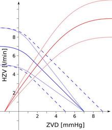 | Keywords: Herz-Kreislauf-Diagramm.svg de Herz-Kreislauf-Diagramm mit Herzfunktionskurve in rot und Gefäßfunktionskurve in blau Der Schnittpunkt beider Kurven liefert den zentralen Venendruck und das Herzzeitvolumen unter verschiedenen Kreislaufbedingungen 2016-05-28 own Nescimus other versions cc-zero Cardiovascular physiology |