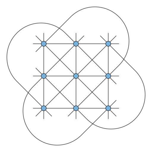 | Keywords: Hesse configuration.svg Hesse configuration Because the configuration is not realizable in the Euclidean plane four of its lines the four broken diagonals of the 3×3 array of points are drawn as curves own David Eppstein 2012-03-31 Projective geometry Lines and points Files by User David Eppstein from en wikipedia Cc-zero |