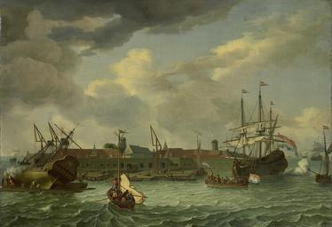 | Keywords: Het eiland Onrust bij Batavia Rijksmuseum SK-A-739.jpeg accession number SK-A-739 nl Gezicht op de scheepswerf op het eiland Onrust bij Batavia Links wordt een oorlogsschip met op de spiegel het wapen van Amsterdam opgekalefaterd Rechts vuurt een oorlogsschip een salvo op het water enkele sloepen één voert een vlag met het wapen van de VOC Achter de gebouwen staan enkele molens en palmen Height cm 77 Width cm 110 exhibition history 1988-1988 De VOC in de kaart gekeken Enkhuizen Institution Rijksmuseum Technique oil canvas object history Acquisition 1881 object type Potential derivatives exist check http //commons wikimedia org/w/index php search Rijksmuseum+SK-A-739 this search PD-US PD-old-100 Data and photography rights All data and all images made available through the API are either in the public domain or are subject to a CC0 license https //www rijksmuseum nl/en/api/terms-and-conditions-of-use cc-zero place of creation http //www rijksmuseum nl/collectie/SK-A-739 Het eiland Onrust bij Batavia Q17322579 Uploaded with GWToolset Het eiland Onrust bij Batavia Rijksmuseum SK-A-739 http //www rijksmuseum nl/media/assets/SK-A-739 Images uploaded by Fæ Images from the Rijksmuseum Paintings by Abraham Storck in the Rijksmuseum Amsterdam Abraham Storck |