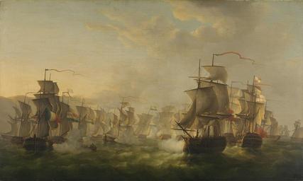 | Keywords: Het treffen tussen de Hollandse en de Engelse vloot tijdens de tocht van de Hollandse flottielje naar Boulogne, 1805 Rijksmuseum SK-A-1394.jpeg accession number SK-A-1394 nl Het treffen tussen de Hollandse en de Engelse vloot tijdens de tocht van de Hollandse flottielje naar Boulogne Vervaardigd te Dordrecht in opdracht van het Ministerie van Marine De Bataafse Republiek droeg in de jaren 1803-1805 bij aan de samenstelling van de Franse invasievloot te Boulogne naar het denkbeeld van de Franse marinescheepsbouwer Groignard opgericht Verschillende eskaders vertrokken daarom vanuit Vlissingen op weg naar de hoofdmacht te Boulogne wat de Engelsen telkens trachtten te verhinderen Collection schilderijen; marinemodellenkamer drager Height cm 95 drager Width cm 159 exhibition history Institution Rijksmuseum Technique oil canvas object history Acquisition 1883 object type Potential derivatives exist check http //commons wikimedia org/w/index php search Rijksmuseum+SK-A-1394 this search PD-US PD-old-100 Data and photography rights All data and all images made available through the API are either in the public domain or are subject to a CC0 license https //www rijksmuseum nl/en/api/terms-and-conditions-of-use cc-zero place of creation http //www rijksmuseum nl/collectie/SK-A-1394 Het treffen tussen de Hollandse en de Engelse vloot tijdens de tocht van de Hollandse flottielje naar Boulogne 1805 Q17324080 Uploaded with GWToolset Het treffen tussen de Hollandse en de Engelse vloot tijdens de tocht van de Hollandse flottielje naar Boulogne 1805 Rijksmuseum SK-A-1394 http //www rijksmuseum nl/media/assets/SK-A-1394 Images uploaded by Fæ Images from the Rijksmuseum Paintings by Martinus Schouman in the Rijksmuseum Amsterdam Batavian Republic Martinus Schouman |