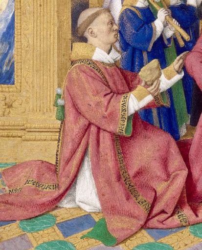 | Keywords: Heures d'Etienne Chevalier - Chevalier et saint Etienne - fragment.JPG ru Св Этьен в уппеланде Ф агмент миниатю ы Этьен Шевалье и св Этьен из Часослова Этьена Шевалье кисти Жана Фуке 1452 60 гг Etienne Chevalier from a minature showing Etienne Chevalier with his patron saint St Etienne 1452 1460 http //www googleartproject com/collection/chateau-de-chantilly/artwork/heures-detienne-chevalier-n-201-et-n-202-etienne-chevalier-presente-par-saint-etienne-a-la-vierge-et-a-lenfant-jean-fouquet/809516/ Google Art Project Jean Fouqet PD-Art Uploaded with UploadWizard Hours of Étienne Chevalier 04 |