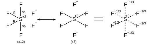 Keywords: Hexa sulf.svg en Resonance structures of Sulfur Hexafluoride with orbitals labelled own Officer781 2013-03-16 Hypervalent compounds